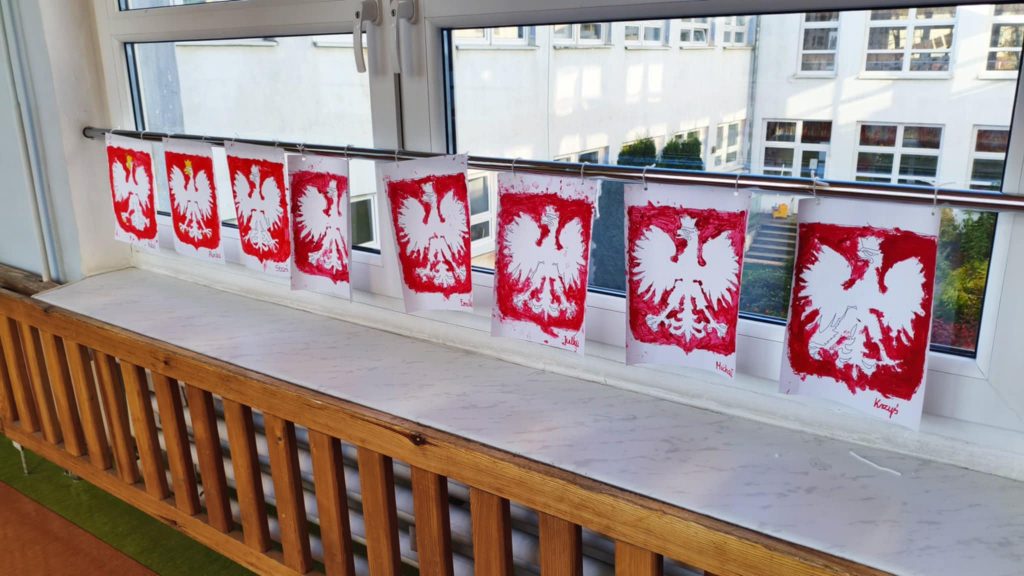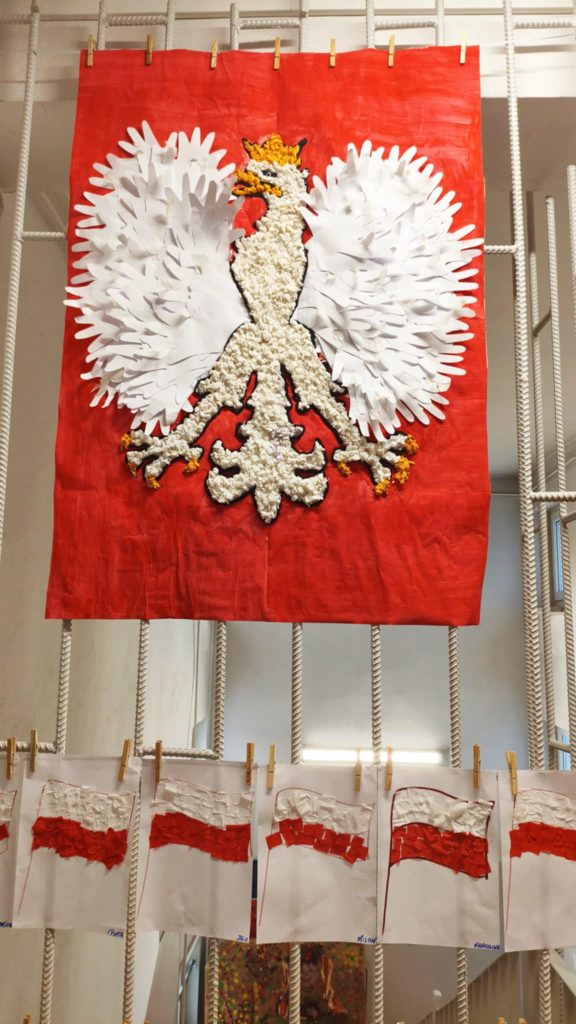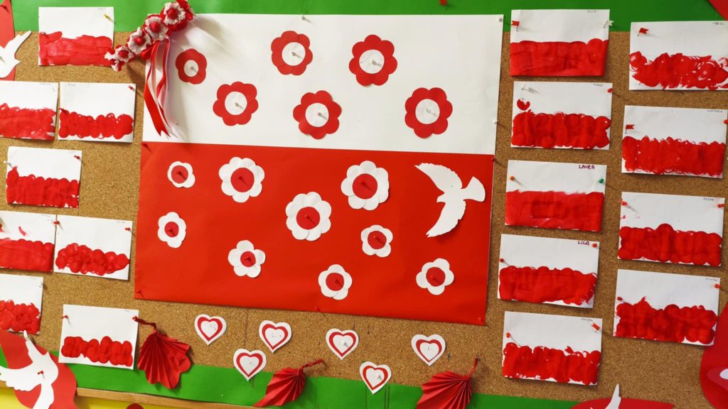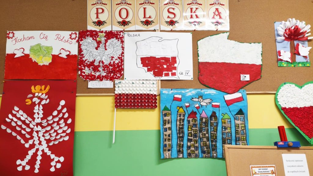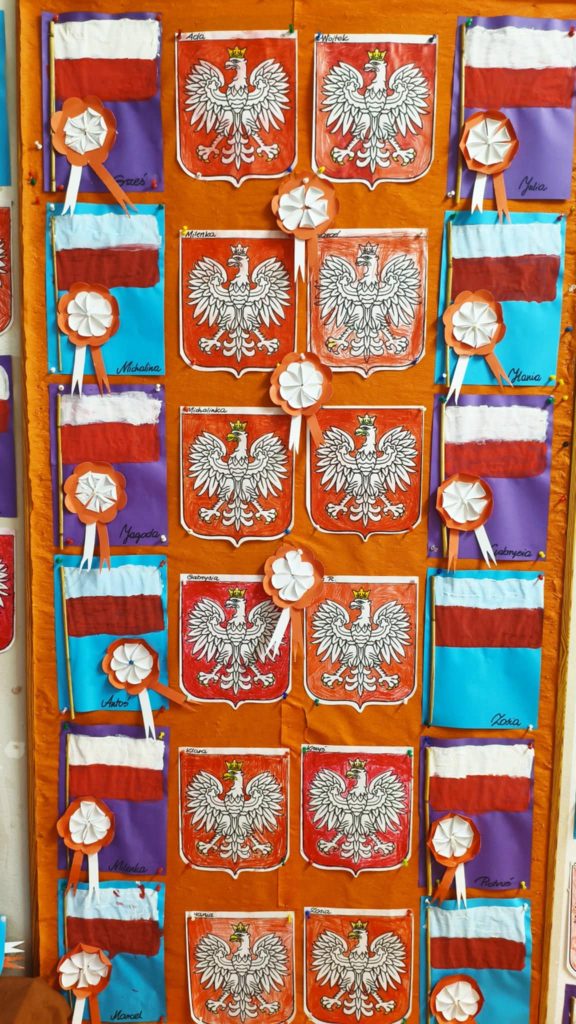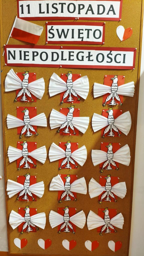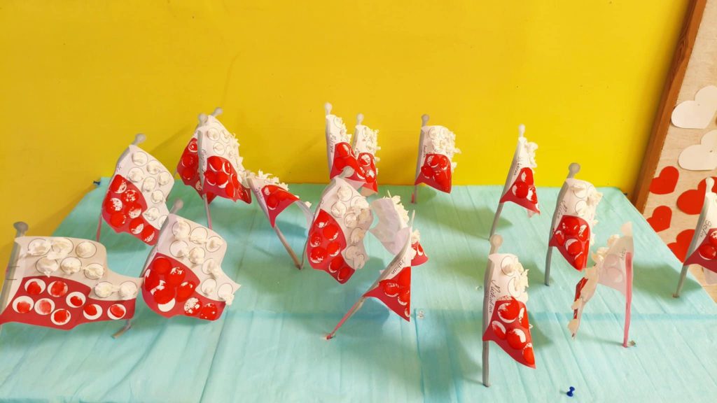 W naszym przedszkolu dzieci z wielkim zaangażowaniem przygotowały prace plastyczne z okazji Narodowego Święta Niepodległości. Podczas zajęć rozmawialiśmy o znaczeniu tego dnia oraz o symbolach narodowych – fladze, godle i hymnie. Przedszkolaki wykonały piękne biało-czerwone prace: flagi, kotyliony oraz orły z papieru. W salach i na korytarzach zrobiło się bardzo patriotycznie – wszędzie pojawiły się barwy narodowe. Dzieci z dumą prezentowały swoje dzieła, ucząc się przy tym, czym jest miłość do ojczyzny.