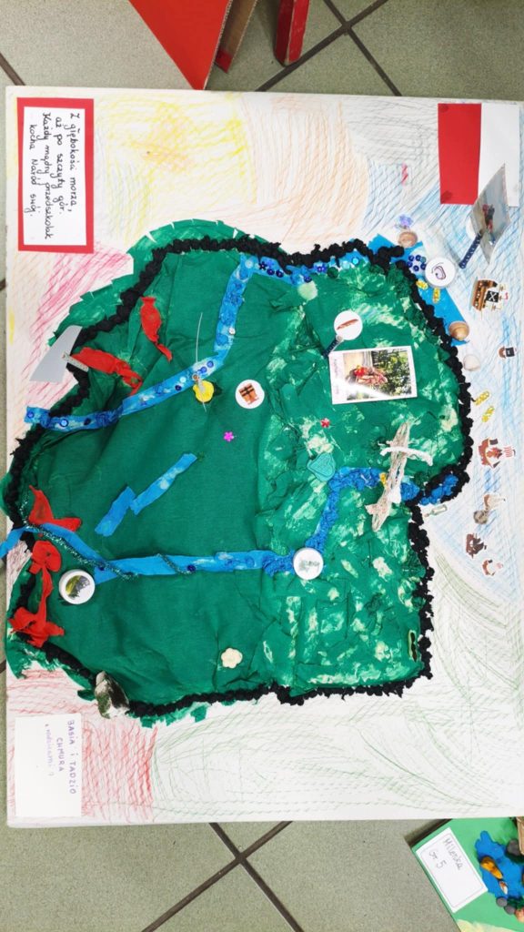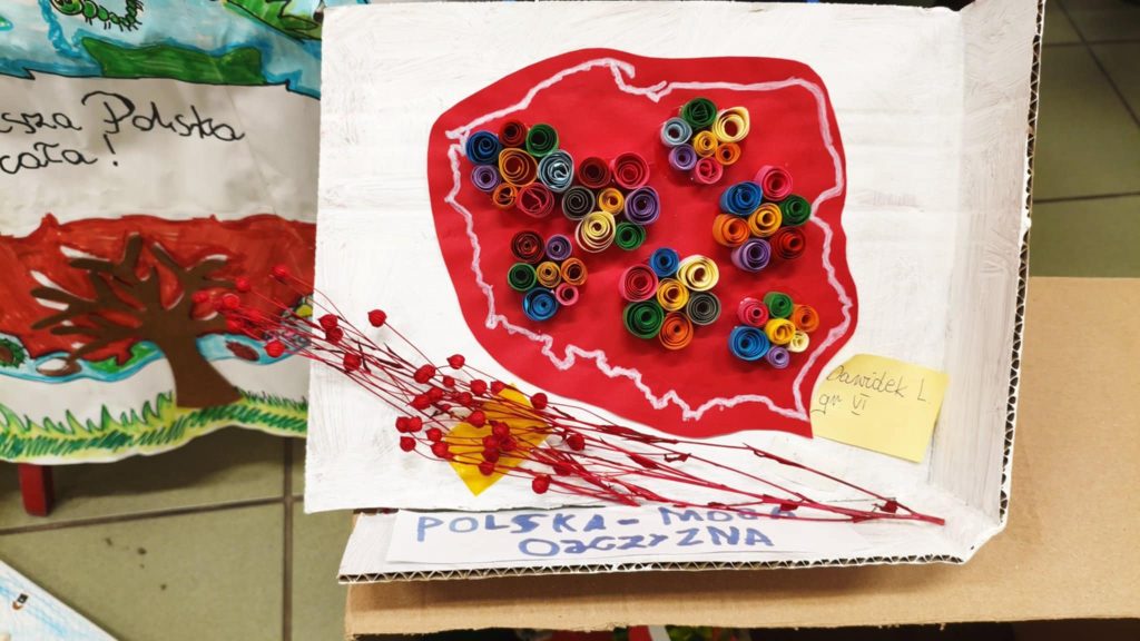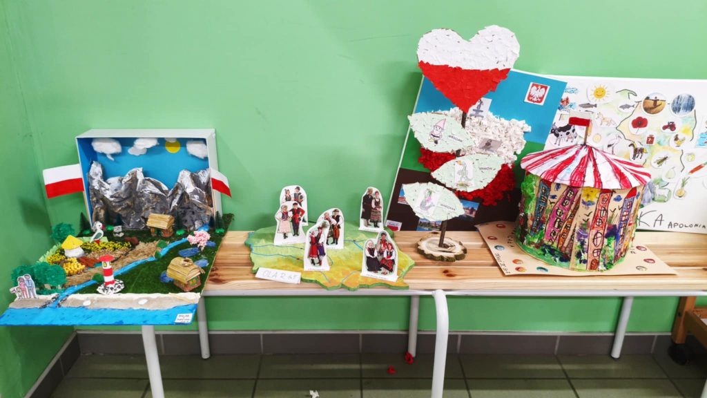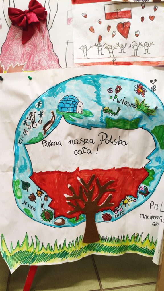 W naszym przedszkolu odbyła się również wystawa prac plastycznych pod hasłem „Piękna nasza Polska cała”. Dzieci wraz z Rodzicami z wielkim zaangażowaniem przygotowały swoje dzieła, przedstawiające najpiękniejsze zakątki naszego kraju, jego symbole i tradycje. Na wystawie można było podziwiać kolorowe pejzaże, polskie miasta, góry, morze, a także biało-czerwone flagi i orły.