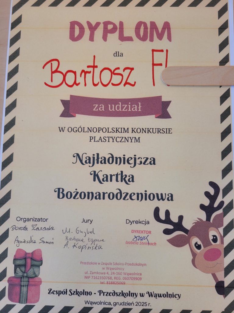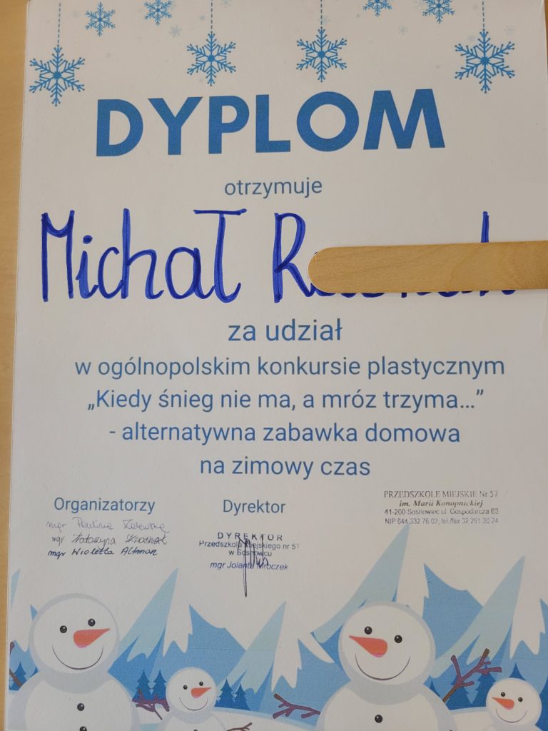 Marcel Sz. z gr. VII otrzymał dyplom za udział w konkursie ogólnopolskim „Maska karnawałowa”.