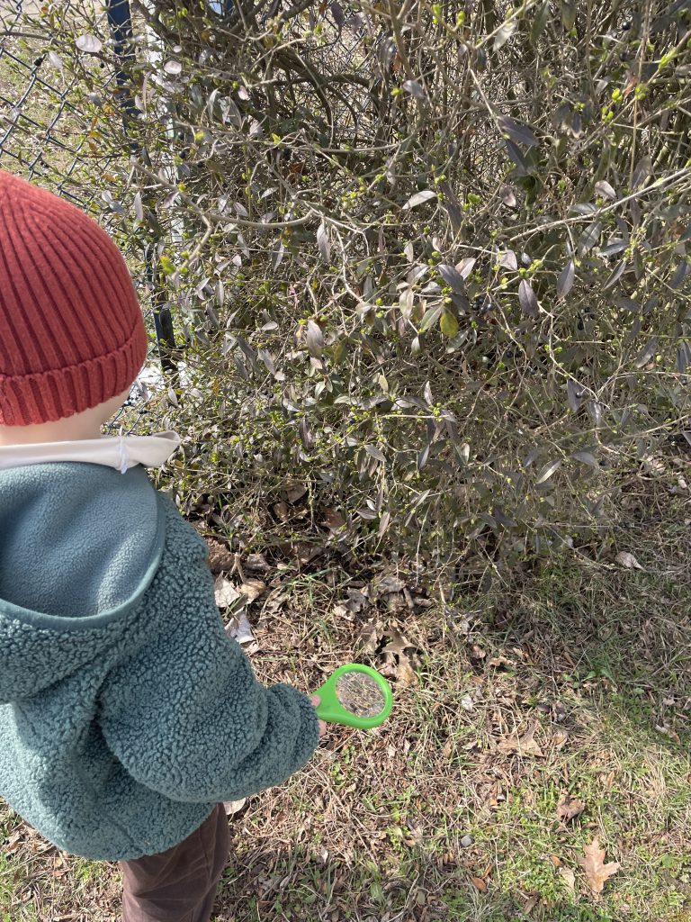 Podczas spacerów mali odkrywcy wyposażeni w lupy wyruszyli na poszukiwanie pierwszych oznak wiosny. Z wielkim zaangażowaniem obserwowali pąki na drzewach, pierwsze kwiaty oraz budzącą się do życia przyrodę. Dzięki lupom mogli dokładniej przyjrzeć się drobnym szczegółom, co sprawiło im ogromną radość i rozbudziło ciekawość świata.
